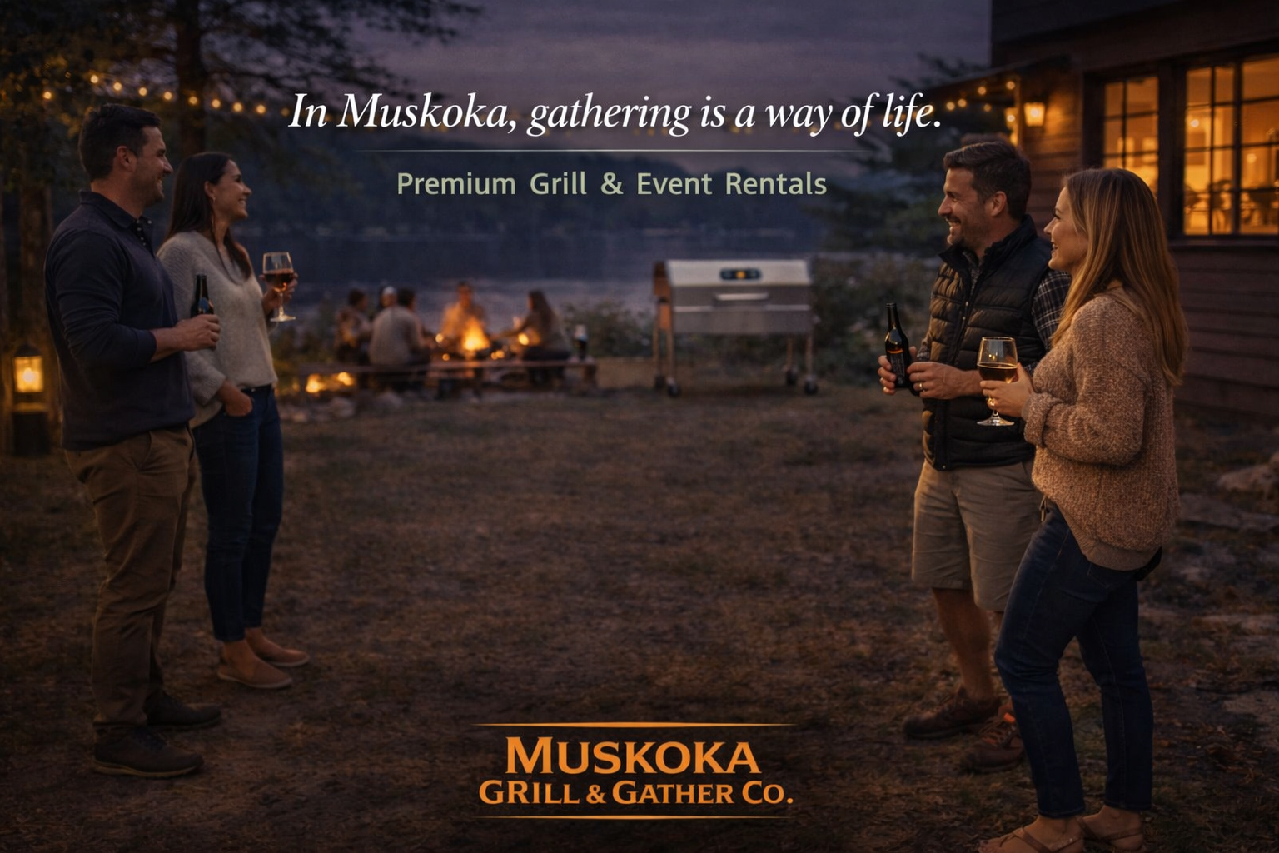 Muskoka Grill & Gather Co. brings wood‑charcoal rotisserie flavour and event-ready equipment to gatherings across the greater Muskoka region. We specialize in commercial-grade rotisserie barbecue rentals and curated accessory kits that make outdoor cooking simple, safe, and impressive.